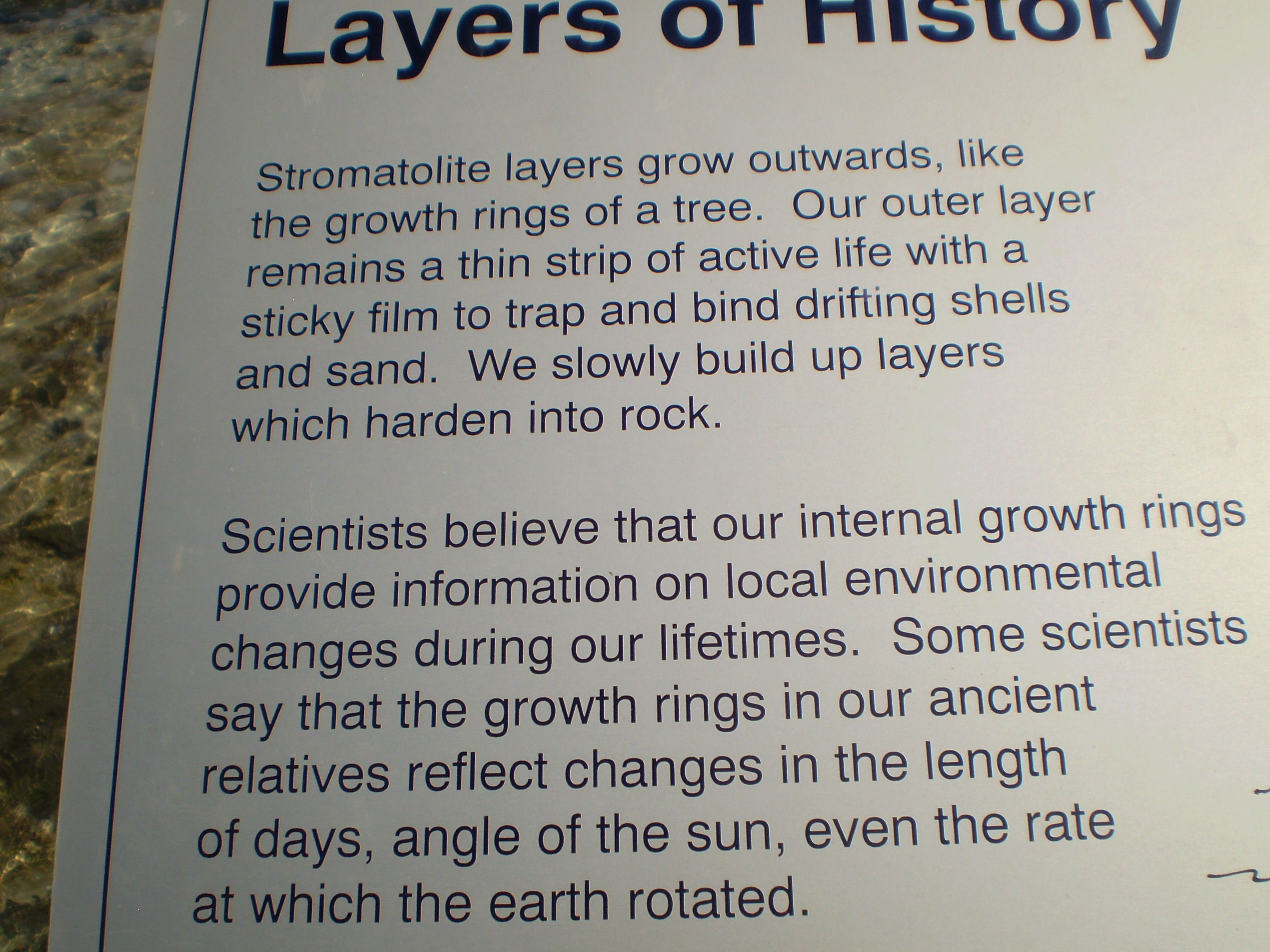 Stromatolite formation occurs in four phases. Firstly filamentous cyanobacteria trap sand grains in mucous. Then heliotropic bacteria lay down a mucilaginous layer. Next sulphate-reducing bacteria form a layer of aragonite crystals. Lastly spherical cyanobacteria bore into this layer making tunnels into which are deposited reinforced crystals of aragonite.