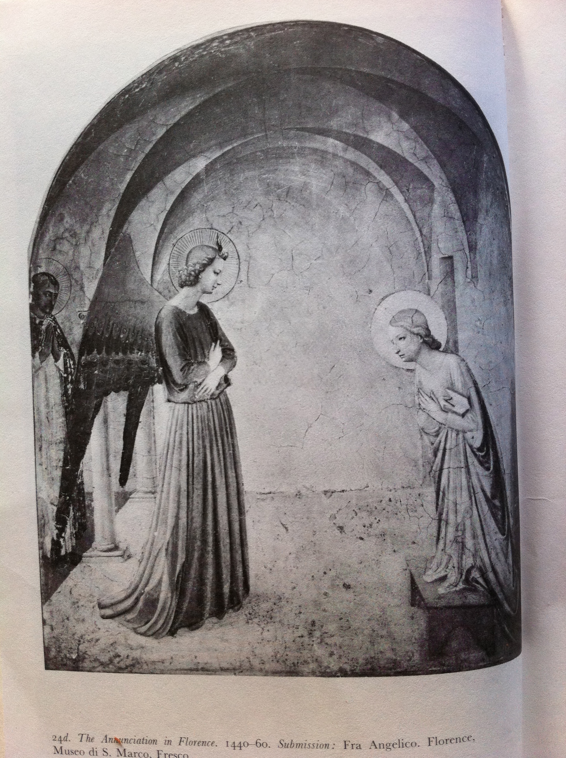 Placed beside the altar in which hung the da Vinci The Last Supper print was a framed print of The Annunciation by Fra Angelico.