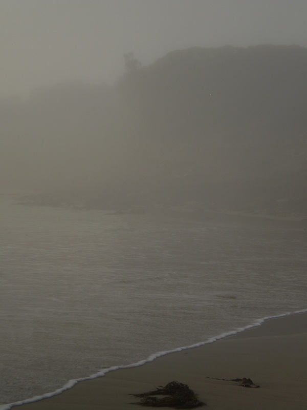 I thought it a wasted effort and with rising tide I returned to the beach, however the rock profile in the foreground echoed the misty distance. When I momentarily glanced back I noticed how at the same time cloudy mist obscured and revealed different aspects of the rock formation.