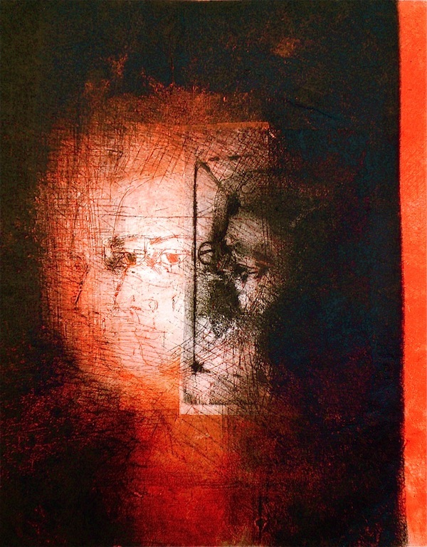 Portraits can tell a story without a long narrative structure because the artist tries to capture a point or in this case points in time within the space of one image. The image is still but it alluded to action and thought. I tried to capture some aspects of the mother and daughter relationship at a time when the mother’s influence waned and prominence of the peer group and the daughter’s sense of identity took the stage. The abstracted shapes like the keyhole and window referred to elements of vision about elucidation, obscurity and transition. The red column shape echoed those in ancient Minoan rituals that depicted aspects of female initiation.