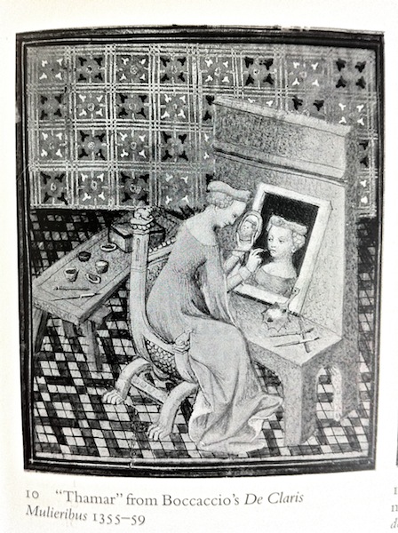 Christian representations of women in the Middle Ages were focused on the opposition of Eve and Mary, seducer and saint. Images of creative women (below) from Antiquity however were acceptable as examples of exceptional persons but distinct from the experiences of everyday women.